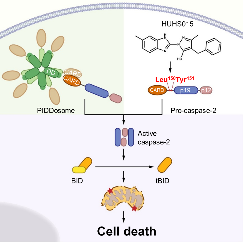 2024年4月27日,北京生命科学研究所/清华大学生物医学交叉研究院邵峰团队在Protein & Cell杂志在线发表题为"Dissecting caspase-2-mediated cell death: from intrinsic PIDDosome activation to chemical modulation"的研究论文,证明了由PIDDosome激活的caspase-2可以直接切割BID分子,激活下游的线粒体内源凋亡通路。此外,在化合物筛选中发现了caspase-2的小分子激动剂HUHS015,并揭示了其直接激活caspase-2的关键作用位点。