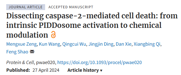Protein & Cell | 邵峰实验室揭示Caspase-2介导的细胞死亡之谜:从内源性PIDDosome激活到化学调控